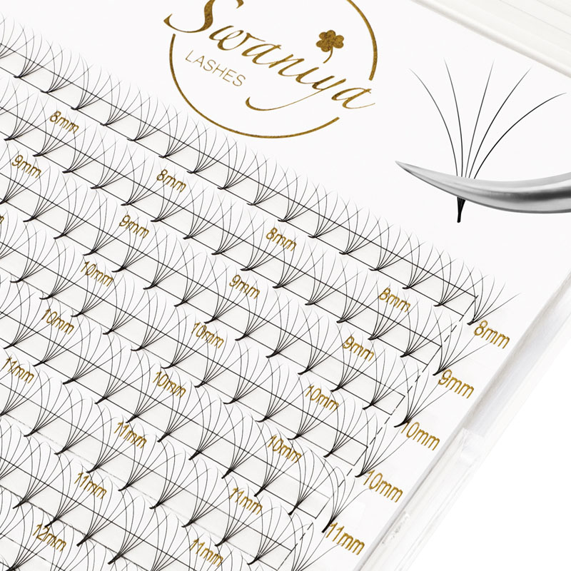Wéi och eng vun profiellen héichwäertege héichwäerteg Ofstandservice an alchonesch Liwwerung ubidden. De Swaniya Premade Super Fans sinn virsiichteg mat ultra-dënnem Wimperen geklommen, déi pre-faarwt, déi d'Erscheinung vu engem voller Ausbildung ginn a méi voluminöse Look. Si si perfekt fir déi, déi e dramatesch Touch un hir Lupp-Spill derbäi wëllen, ouni sech op Qualitéit ze kompromonéieren.